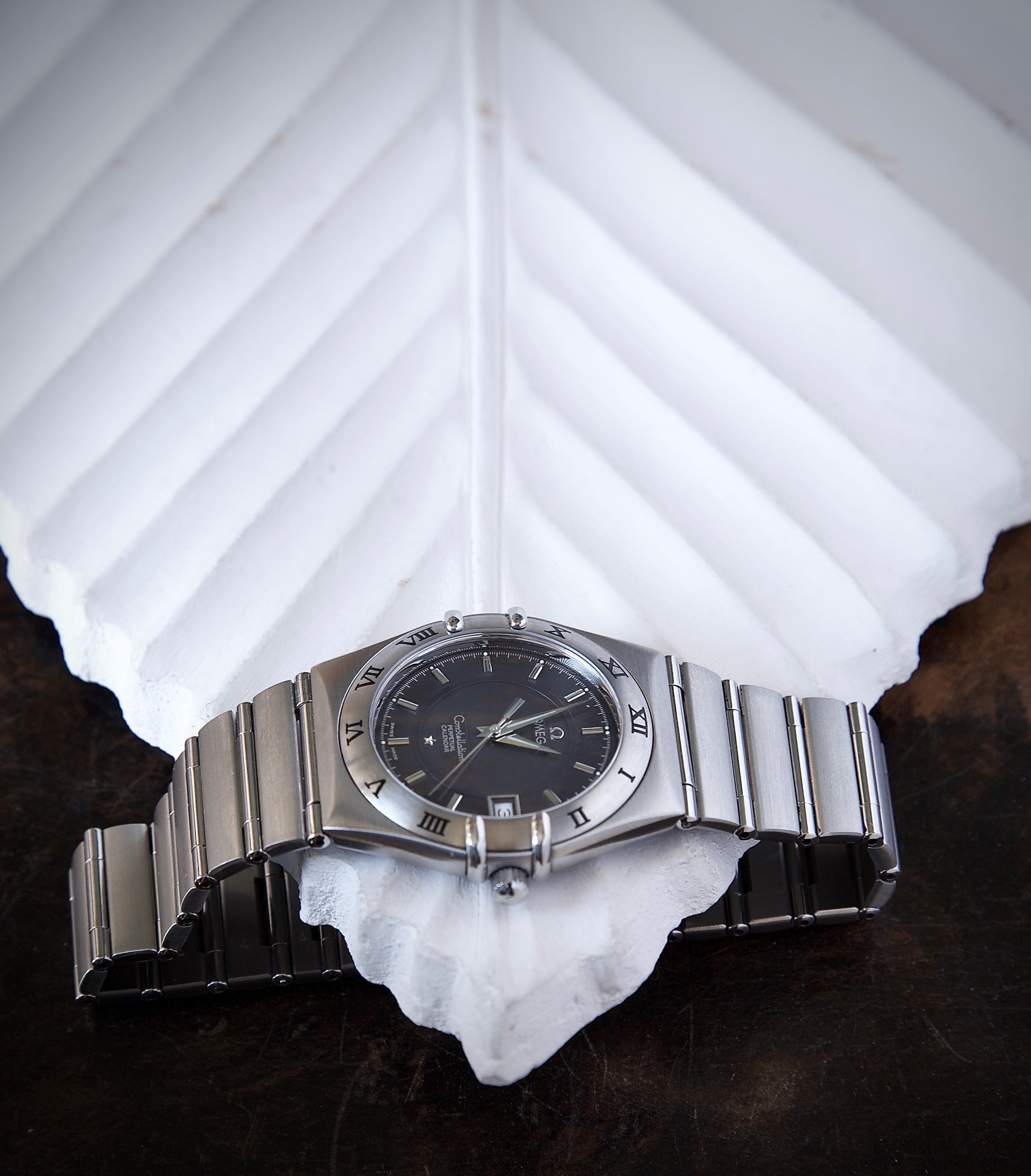The grey dial, in exceptional condition, is enhanced by dauphine hands, lending it a timeless and sophisticated style. A sober and refined design that retains all the personality of the Constellation models from the late 20th century.