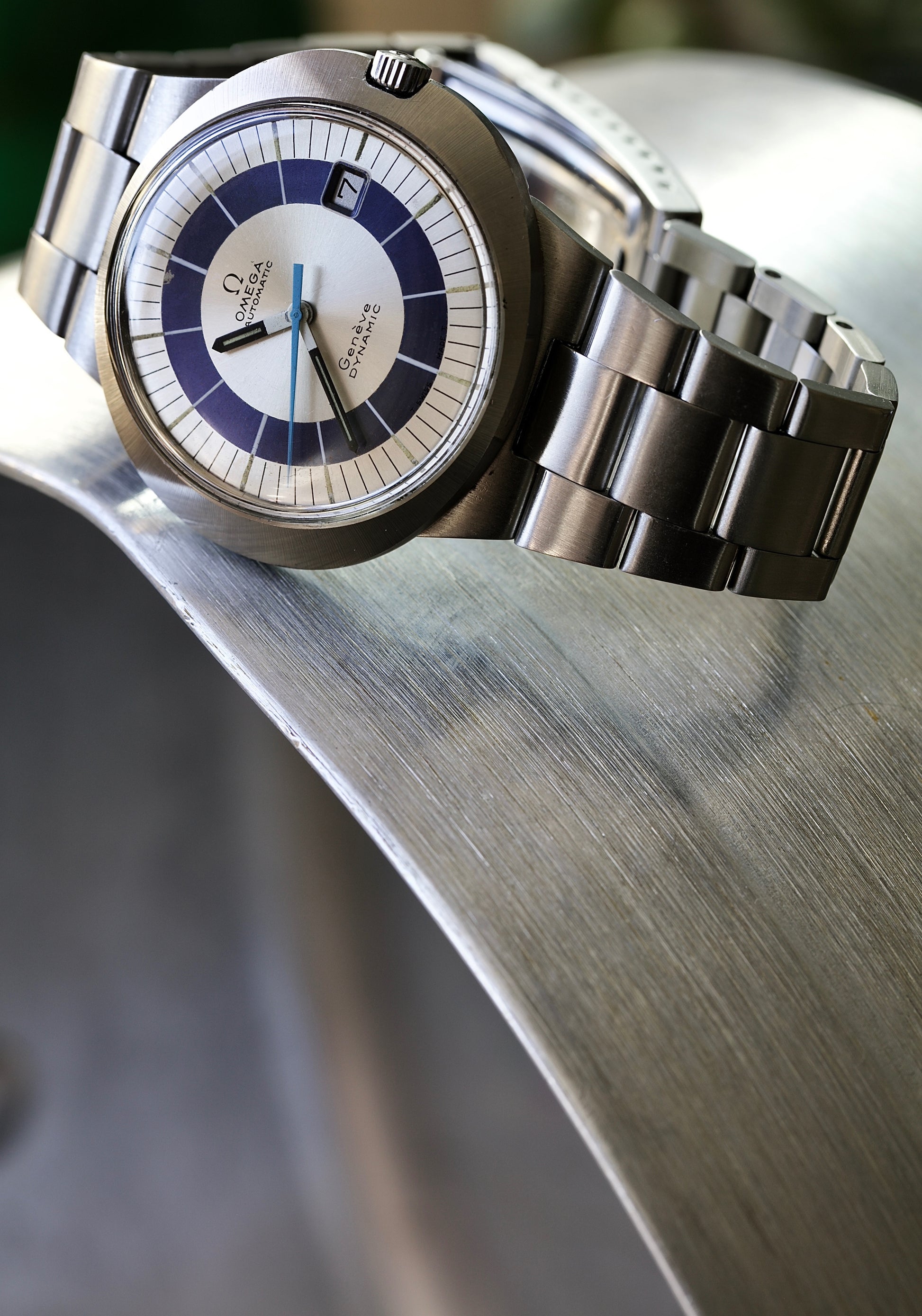 The striking white and blue dial is perfectly integrated into the oval design of the case. The colour combination reinforces the model's unique identity and underlines its innovative spirit within Omega's late 1960s catalogue.