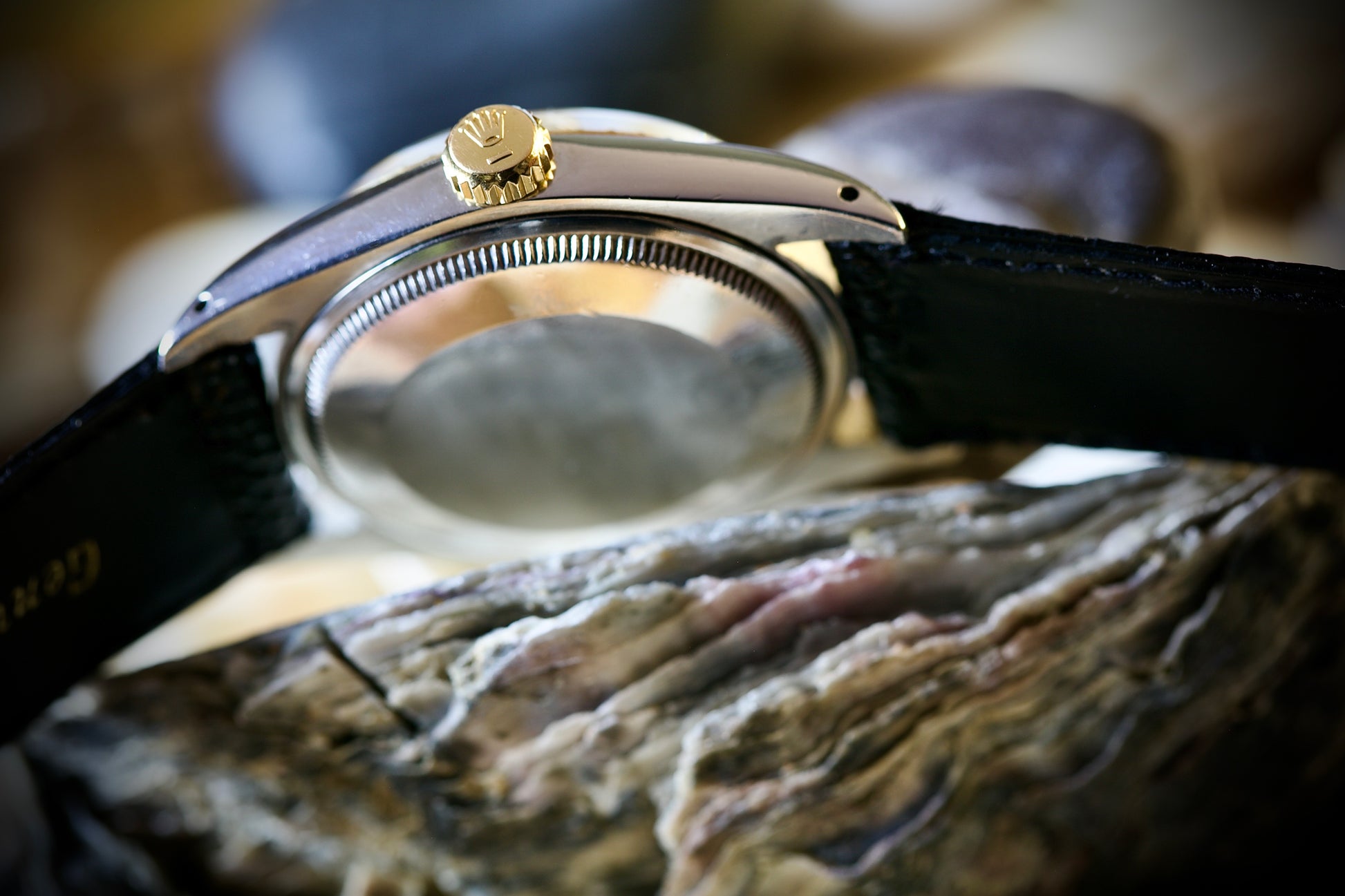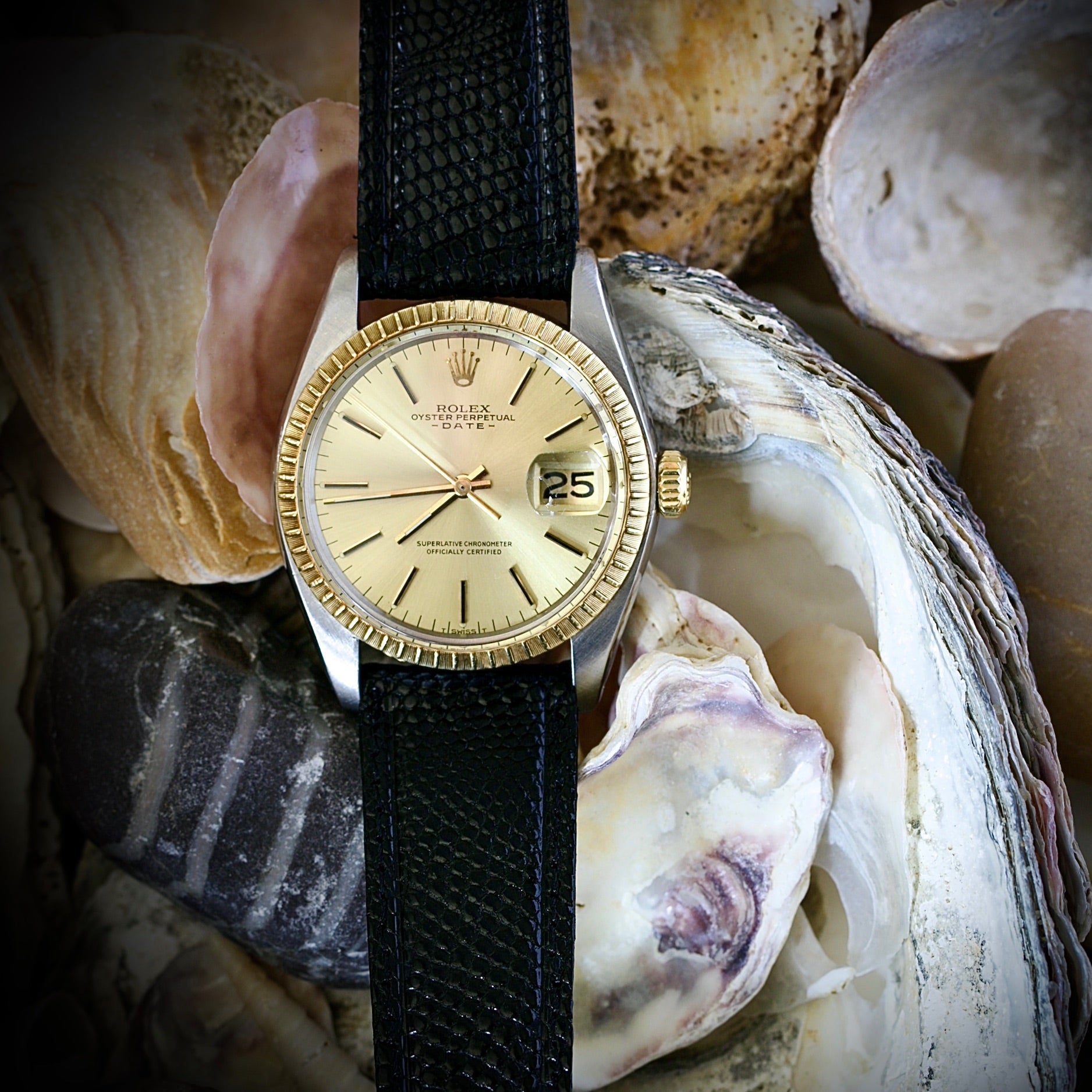 The original champagne dial is preserved in exceptional condition, displaying a warm and elegant tone that enhances the watch’s classic character. The applied hour markers and date window provide excellent balance and legibility, reinforcing the understated sophistication that defines this reference.
