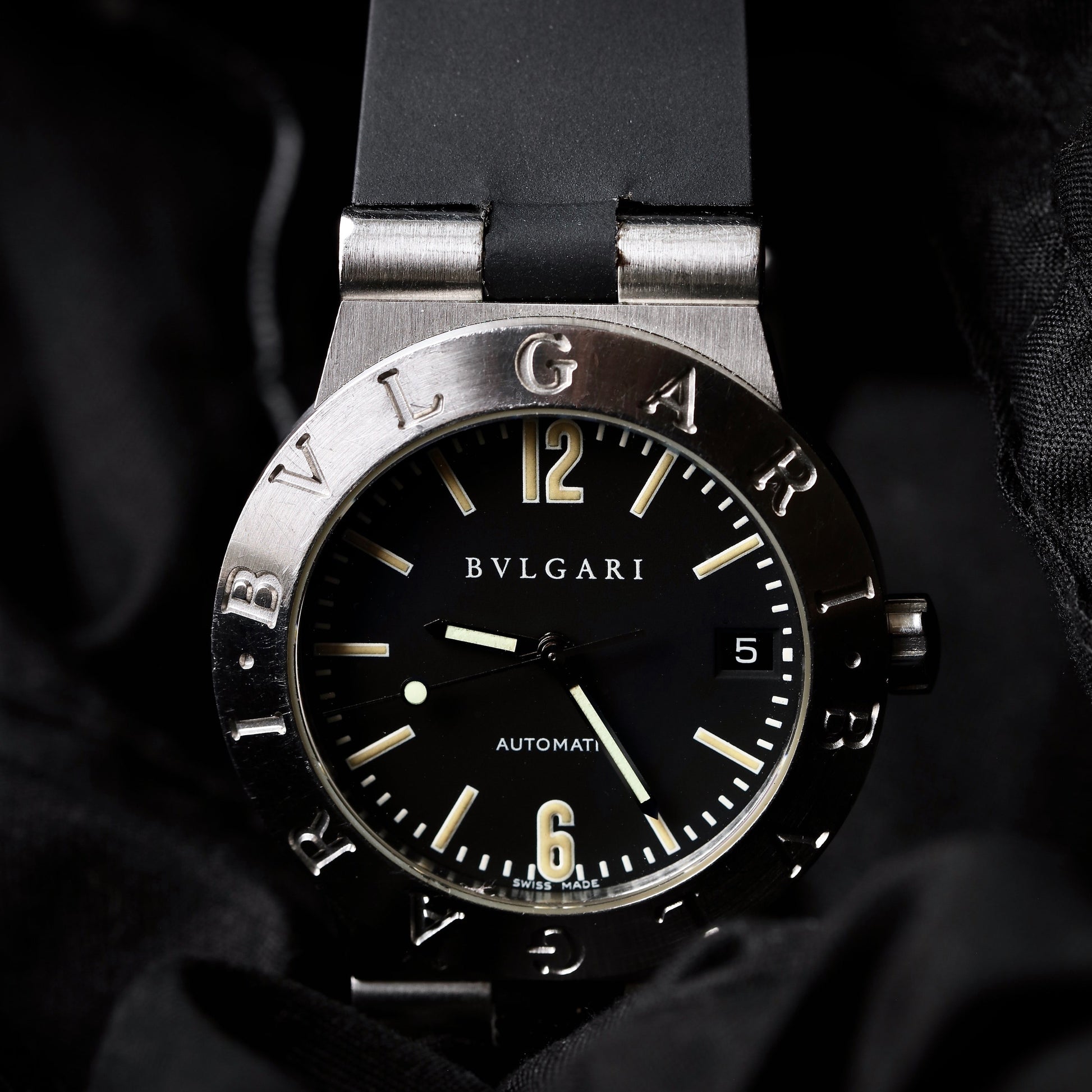 Presentamos un Bvlgari Diagono Ref. LC35S de comienzos de los años 2000, una pieza icónica de la casa italiana que combina deportividad, elegancia y una estética atemporal. Su esfera negra, especialmente difícil de encontrar en este modelo, aporta un carácter distinguido que realza la conocida identidad de la línea Diagono.