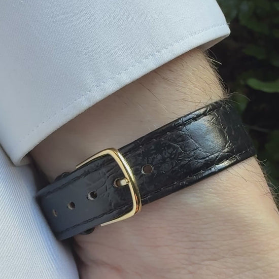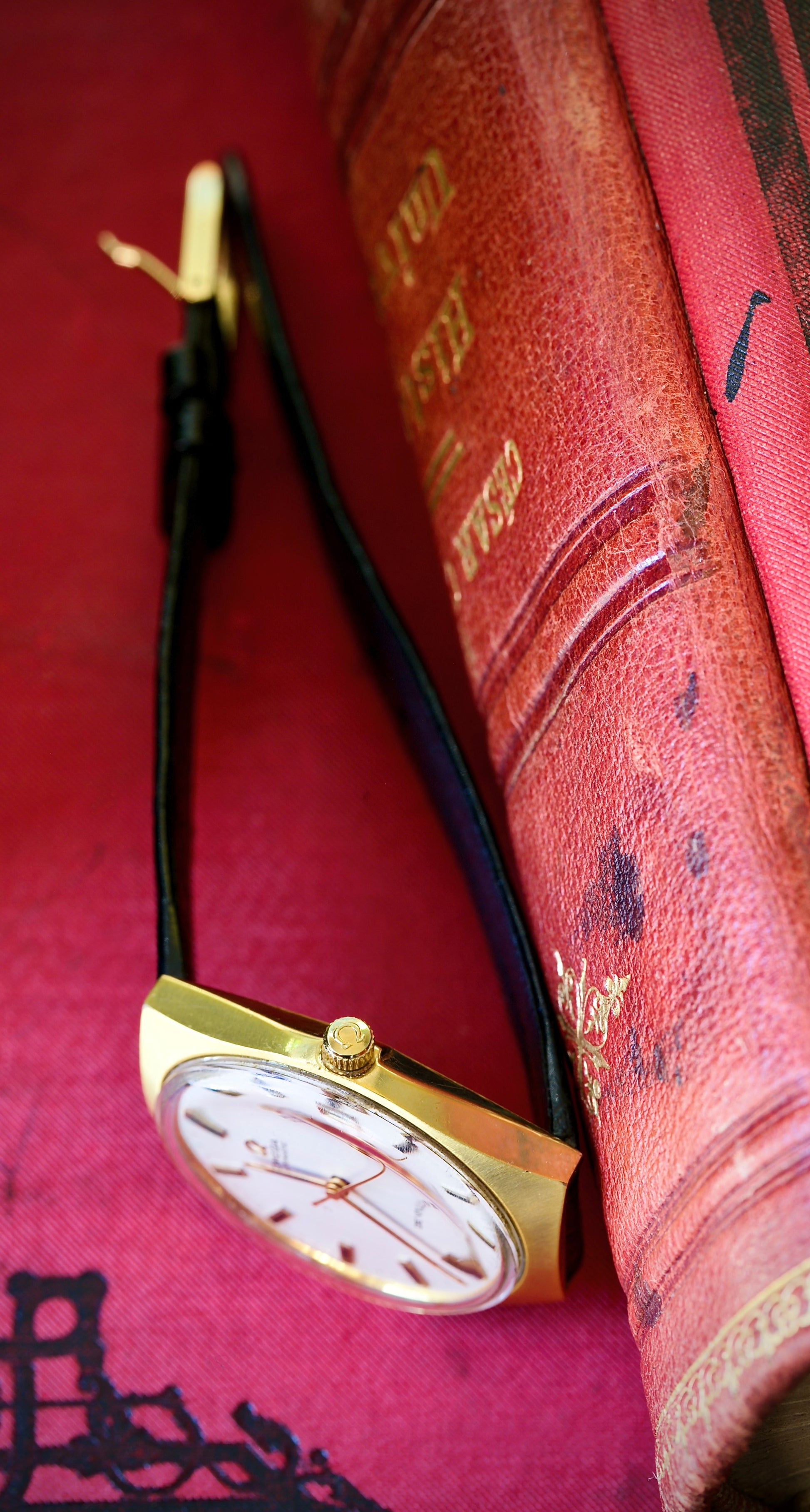 Su caja chapada en oro de 40 micras ofrece un brillo cálido y elegante, manteniéndose en un estado impecable. Con un tamaño de 34,5 mm (sin corona), este modelo aporta más presencia de la que indican sus medidas gracias a la forma de la caja y su diseño estilizado. Mantiene su cristal plexi Omega Original.