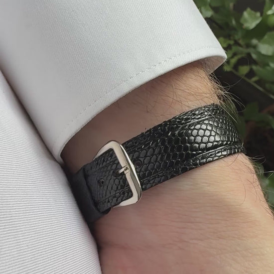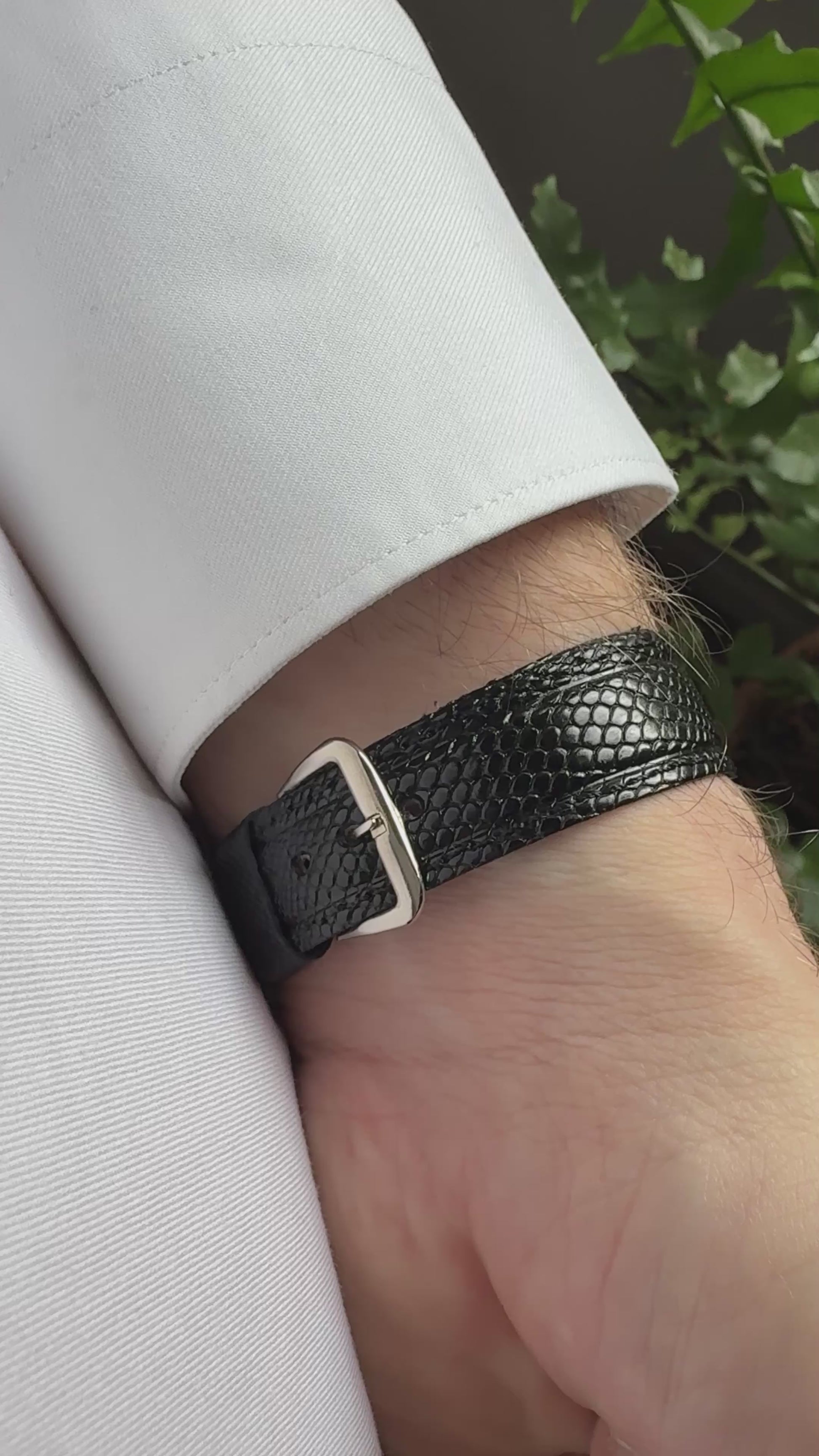 La esfera negra, restaurada por un maestro relojero, se encuentra en condición excepcional. El contraste entre el fondo negro y los índices aplicados en tono dorado aporta una lectura clara y una presencia sofisticada en muñeca.
